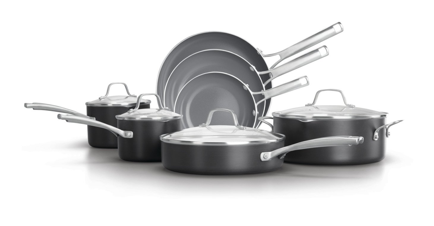 One of the strongest points of the calphalon ceramic set is how quick the pans heat also the surface heats evenly and you will never have problems with hot spots that burn part of your meal. It only comes in one color a glossy and shiny black that contrasts with the white ceramic coating. In response to customer demand however in 2013 calphlon introduced a ceramic based cookware containing no ptfe or pfoe. Due to its chemically intrinsic properties it does not break down in normal atmospheric conditions like rain or summer.